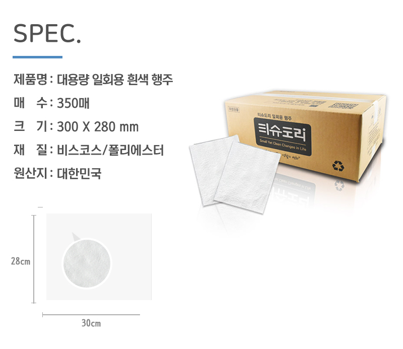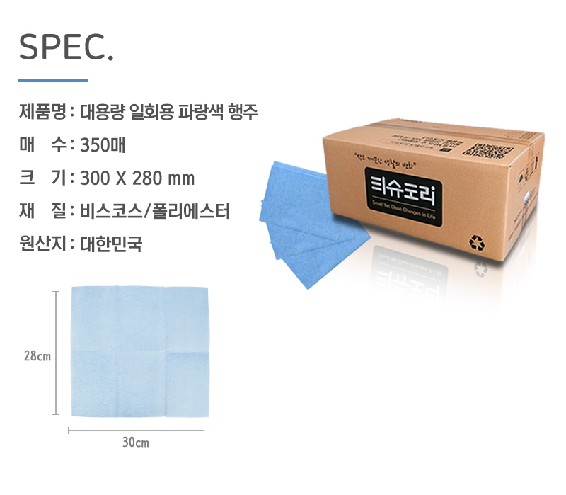 HOME > 티슈도리 전체상품 > 기타위생용품 > 하루 한장 빨아쓰는 일회용 행주 수세미 350매 (업소용, 대용량)