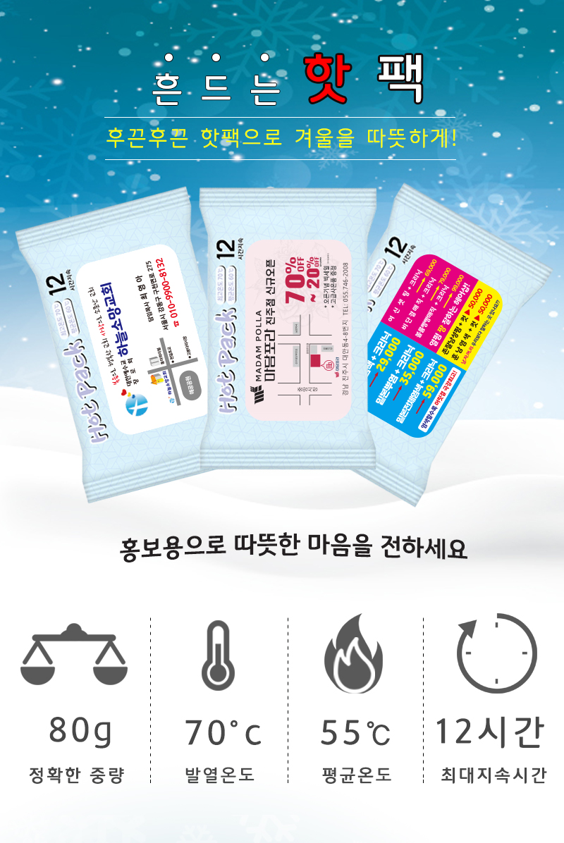 | 사용방법 | 핫팩 비닐 제거 후 흔들어 사용해주세요 |